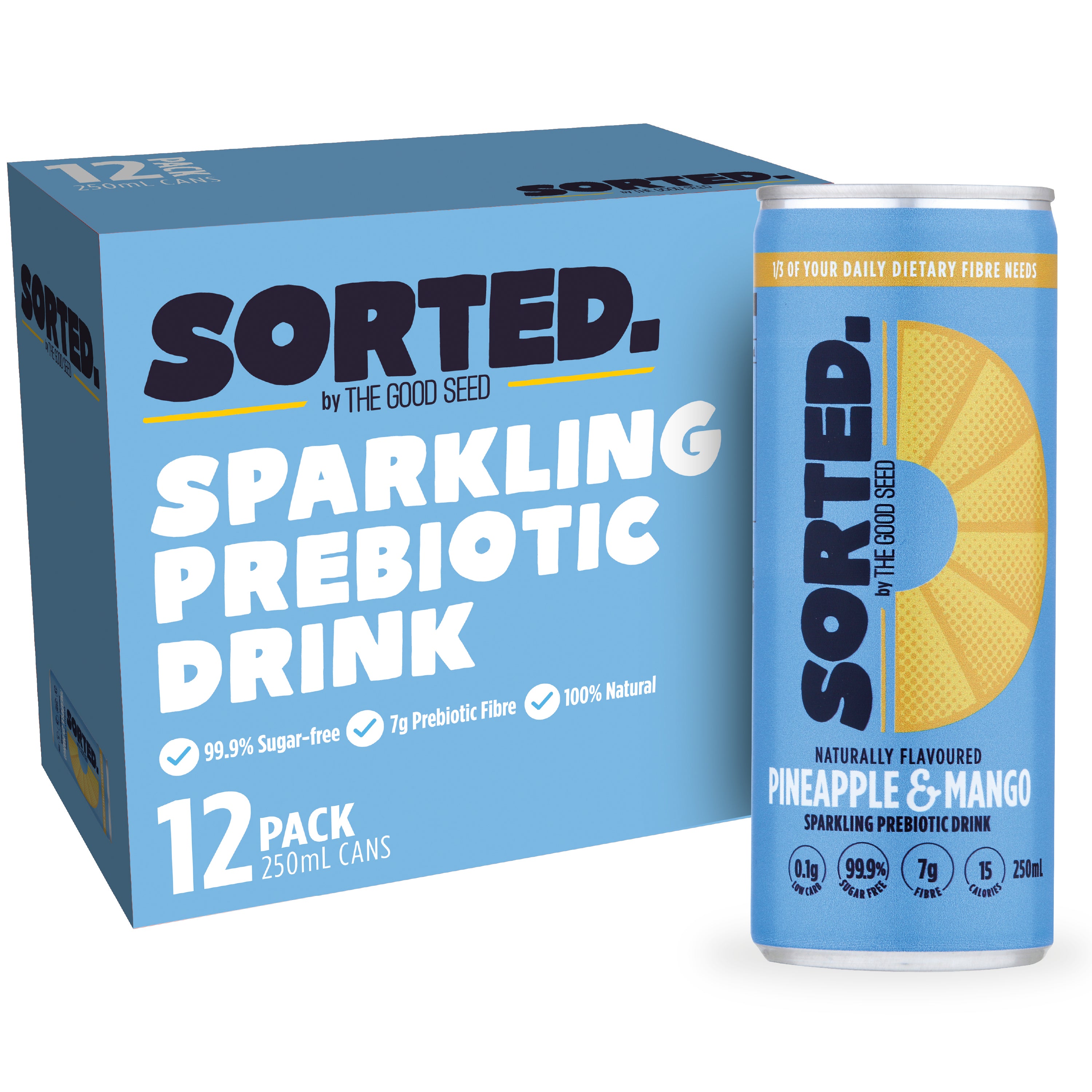 12 Cans - Pineapple & Mango: "Tropical Queensland in a can! šŸšŸ„­ Sweet pineapple and juicy mango come together for a flavour-packed tropical escape. This fruity duo is the perfect sunny-day pick-me-up!